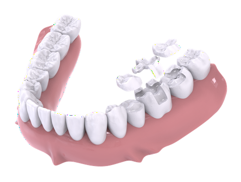 This material is used for filling teeth cavities and restoring the original dental function. It is applied when the small decayed area hasn’t destroyed the entire structure of a tooth.